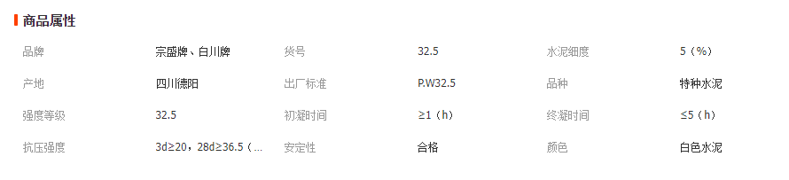 宗盛牌、白川牌32.5級(jí)白水泥(P·W-1 32.5)